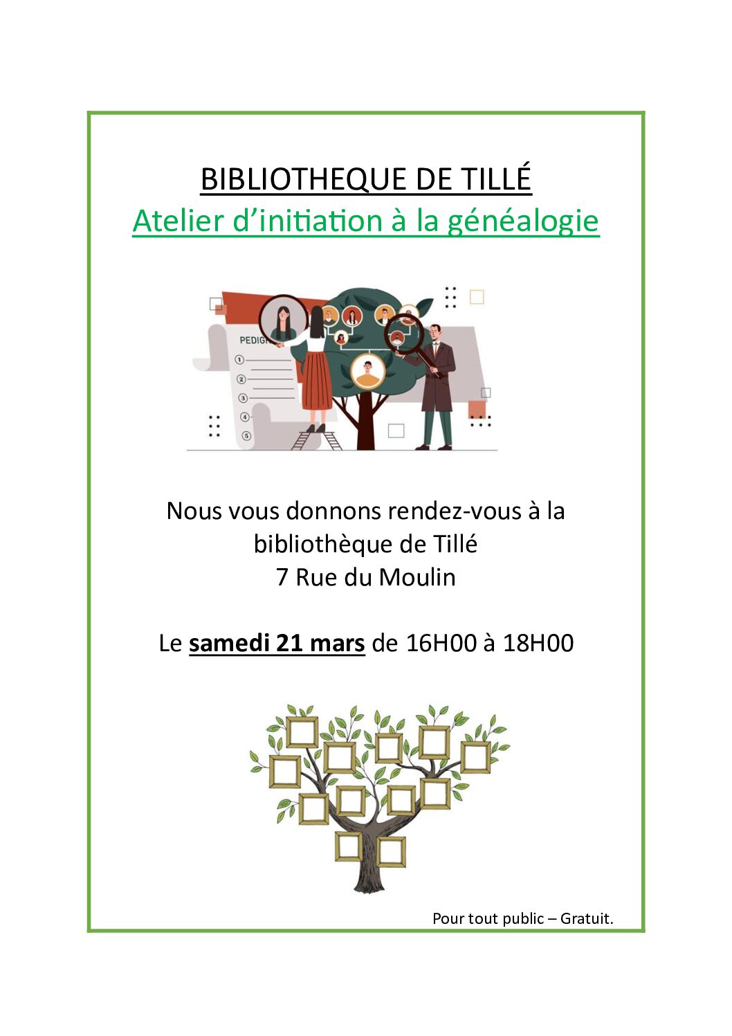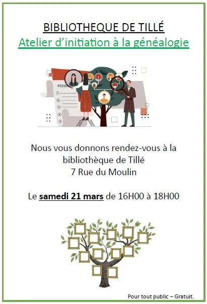 Les bénévoles de la bibliothèque vous donnent rendez-vous le samedi 21 mars 2026 de 16h à 18h pour une initiation à la généalogie.